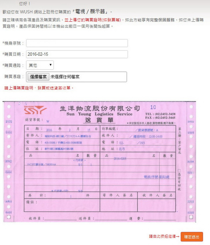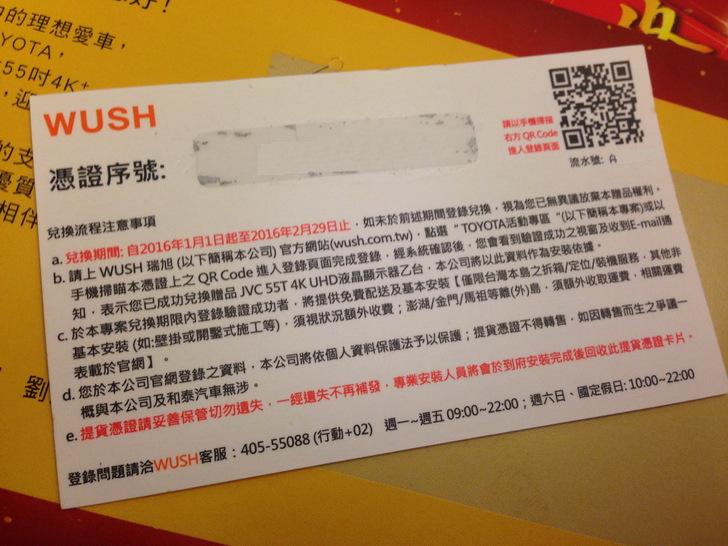 送來的時候還會給你一小張操作指南,並告知可以上網下載使用手冊,小弟之前為了確忍HDMI規格等已上網下載看過,印象中沒什麼,另外就是會拿到序號和QR Code的保固貼紙,要上網登記才會將原本18月的保固延長為36個月,也就是三年保
