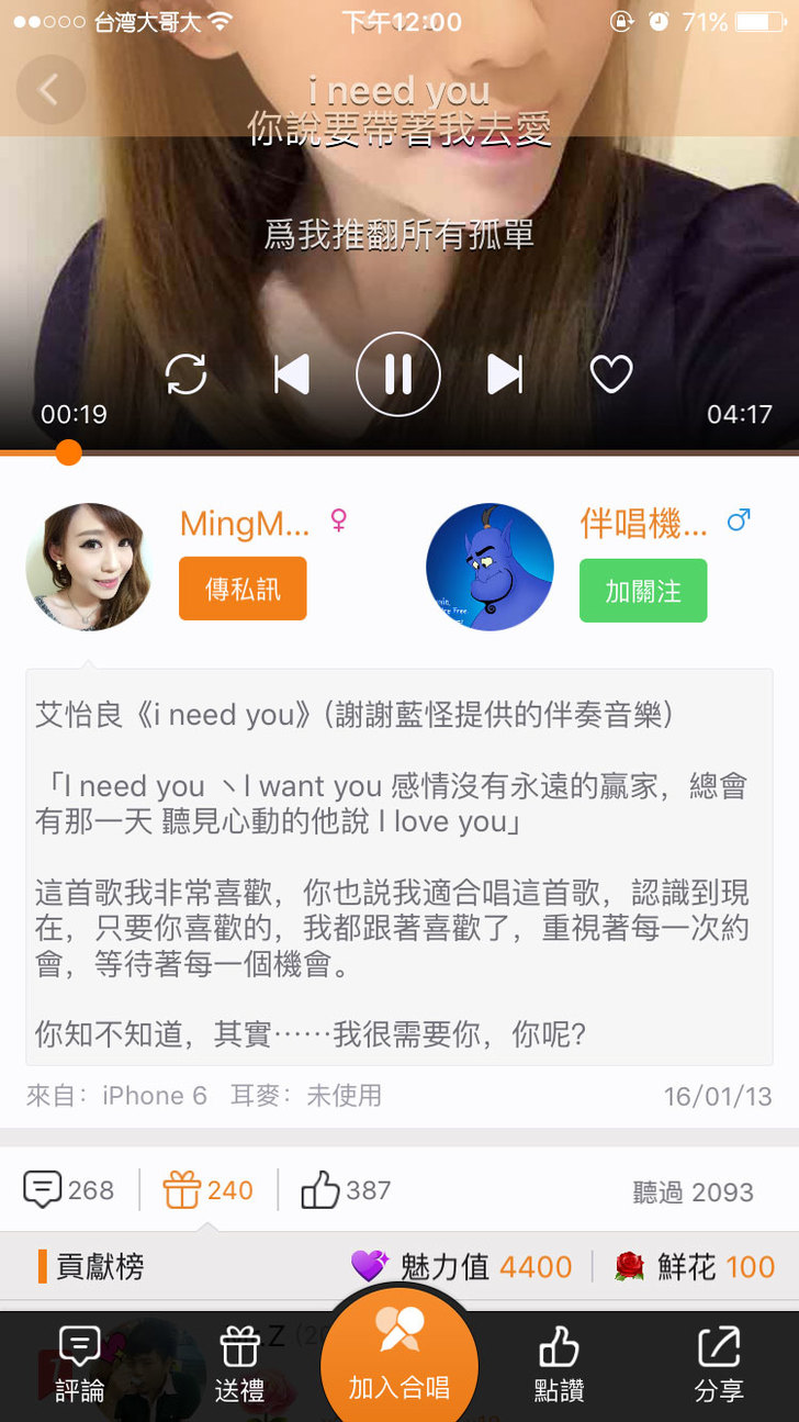 發現一款好應用,推薦給熱愛唱歌的各位。歡歌,集練歌、交友、娛樂于一體的新型K歌類軟體。不僅小巧不吃記憶體,音效更是好到炸~親測音質無可挑剔,界面清新,操作簡單易懂。並且還是免費下載使用喔!