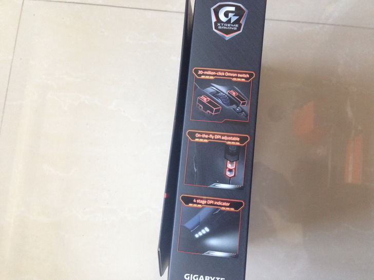 盒子側邊有此滑鼠的特色介紹,分別是日系歐姆龍微動(2千萬次點擊)、快速調整DPI、DPI檔次顯示、鍍金USB接頭、左右兩側防滑橡膠、鐵氟龍鼠腳