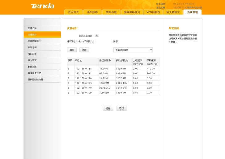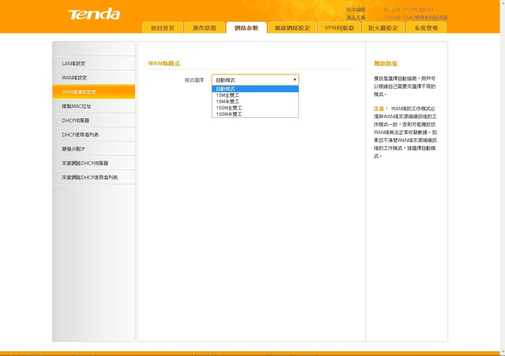 這就是剛剛有提到的速率問題,就給大家自行參考囉!其他也都是很基本的設定,像是IP分配啦、連線方式啦……等等就也不一一截圖了。不過值得一提的就是他有獨立出一個來賓網路,所以可以有兩個不同的DHCP網段,比較不會因為被自己手誤沒設定好的資訊外流XD