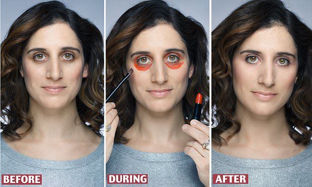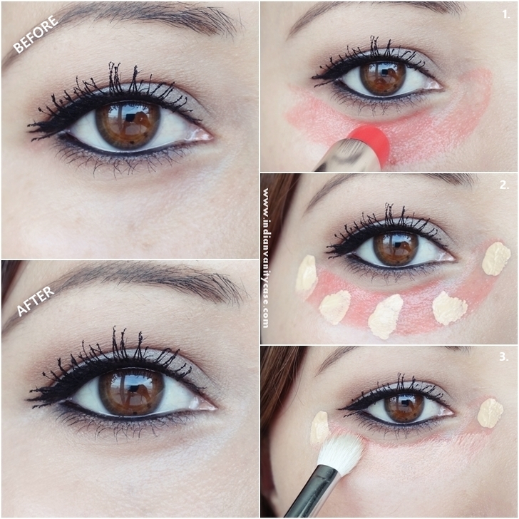 很簡單,先塗薄薄一層唇膏在黑眼圈部位