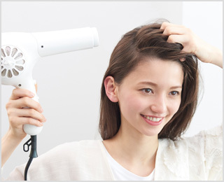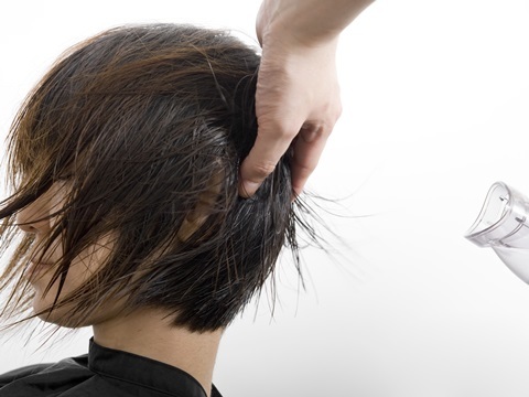 用溫熱的風先把髮根吹乾,並且盡量由上往下,順著毛鱗片的方向把頭髮吹乾。