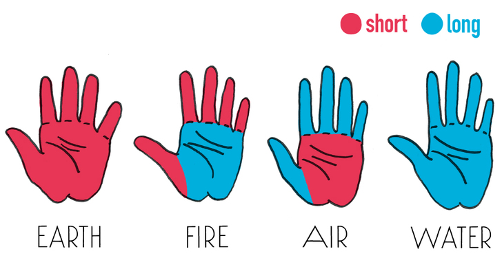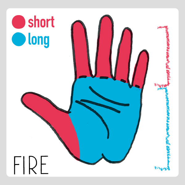 手掌的部分比較大、手指比較短的人屬於火的類型。