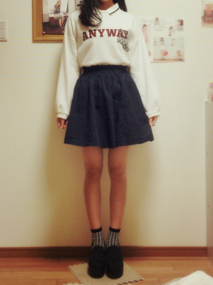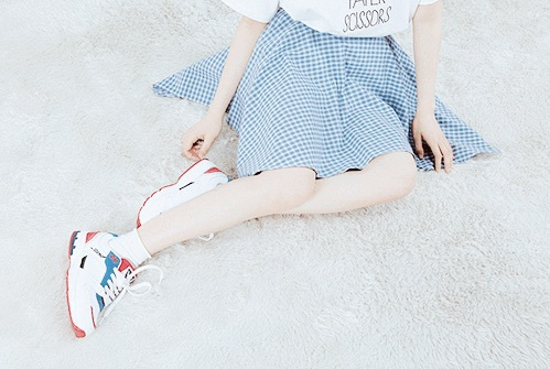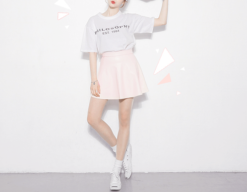 小隻女若想走甜美路線,讓身長看起來比較高,可以選擇及膝傘擺圓裙,穿在有點高腰的位置,拉長腿的視覺比例。