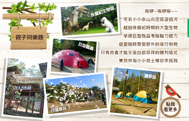 剛剛查了一下這周末要去玩的地方~ 覺得東勢林場好像還不錯欸 尤其是他們網站的介紹 圖片來源:http://2016springtrip.prettylife.com.tw/ 覺得蠻豐富的~ 現在是東勢林場跟溪頭妖怪村2選1 大家覺得呢? 讚 收藏 快速回應 引言回應