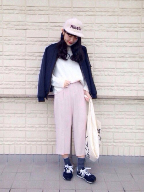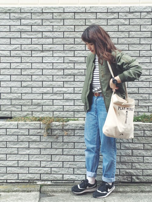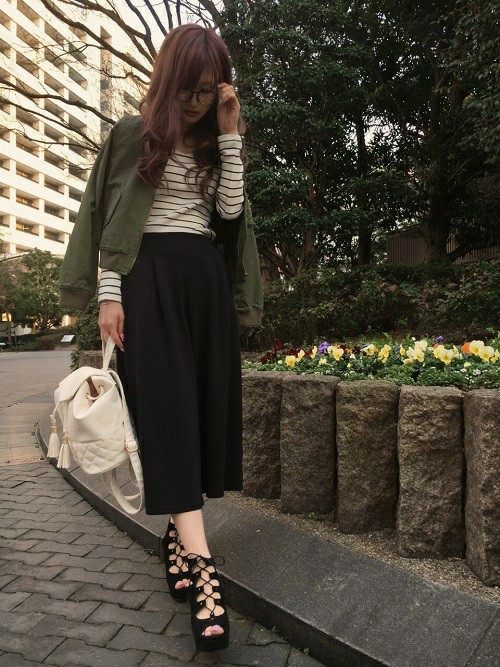 是日本媽媽們年輕時候流行的款式,其實跟寬褲有點像,配上飛行外套有種復古的氛圍。