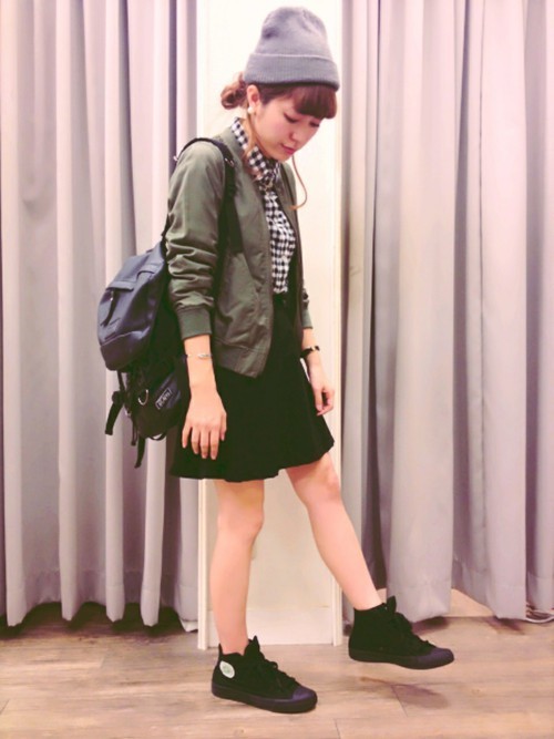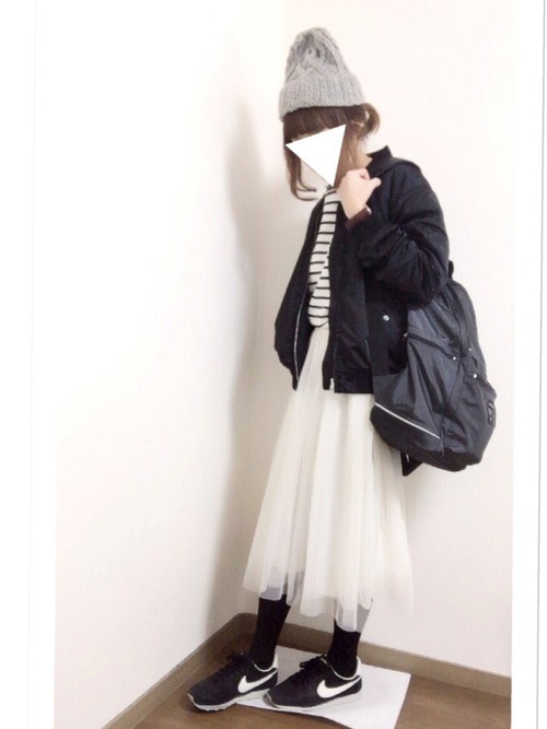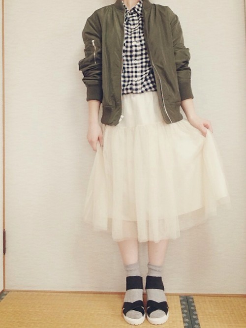 在日本女孩間特別流行的甘辛mix穿搭,當然也不會放過中性的飛行外套!如果你藏有一顆喜歡浪漫紗裙的少女心,但平常又不敢直接穿出門,這樣的配對就是你最好的選擇!