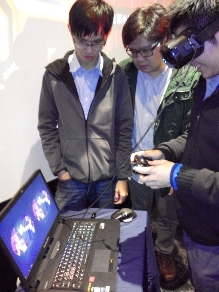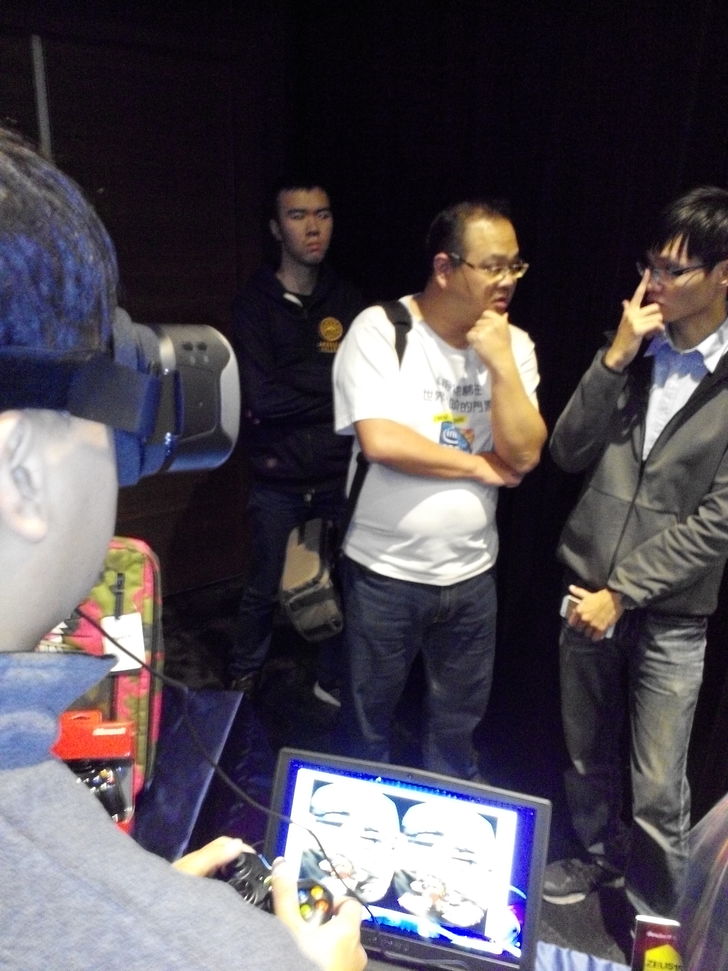 3Glasses 程式設計師 莊松益 先生 和玩家在討論VR頭盔和相關設計的未來可能應用