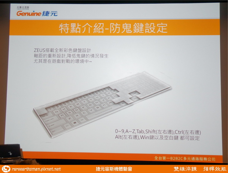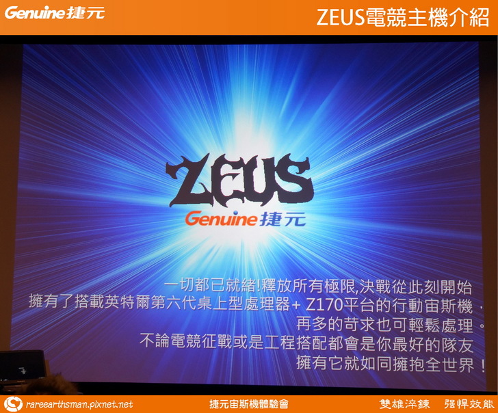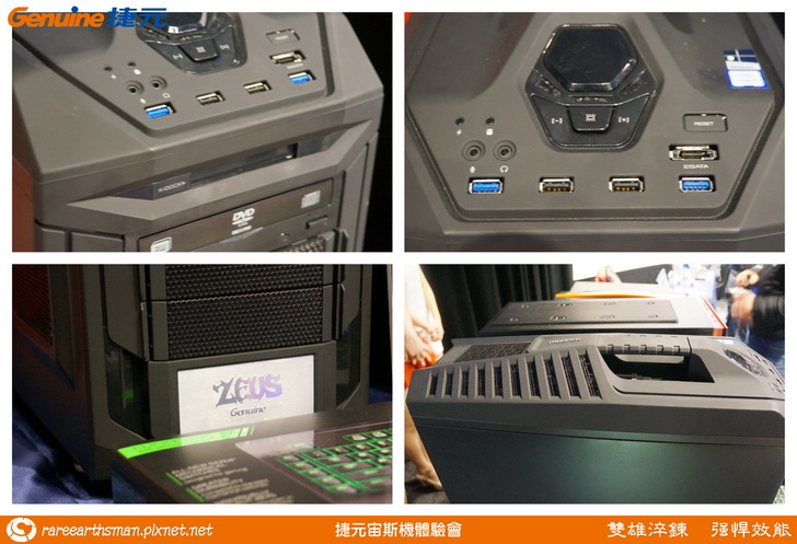 ▲捷元電腦的電競電腦是以古希臘神話中的眾神之王ZEUS宙斯為名,在桌上型電競電腦領域,捷元推出了頂級旗艦宙斯機、旗艦宙斯機、宙斯機及宙斯機入門-II這4種等級供玩家來選擇;且捷元是家品牌電腦通路商,均是以系統來出貨,特別的是一般通路商大概只能出一款的規格,但是因為捷元推出了BTO的平台,在基本的規格上可以在出廠前就可以組裝好不同的零件規格,消費者可以客製化的空間就變得很大,可以更符合消費者的需求。但畢竟這是家品牌電腦商,在此場體驗會的重點放在這些預設好的主機均可以完全顯示出高階電腦遊戲的運算效能,所以對於電腦內部的規格並沒有過於強調,會場內也沒有介紹機殼的內部,甚至連內部電腦配件都沒有裝置上,所以產品介紹的部份僅就外觀做一些大致上的介紹了,機殼內部使用的材質,如何組裝,甚至是否使用無螺絲結構就不介紹了,沒打開來看我也不知道。