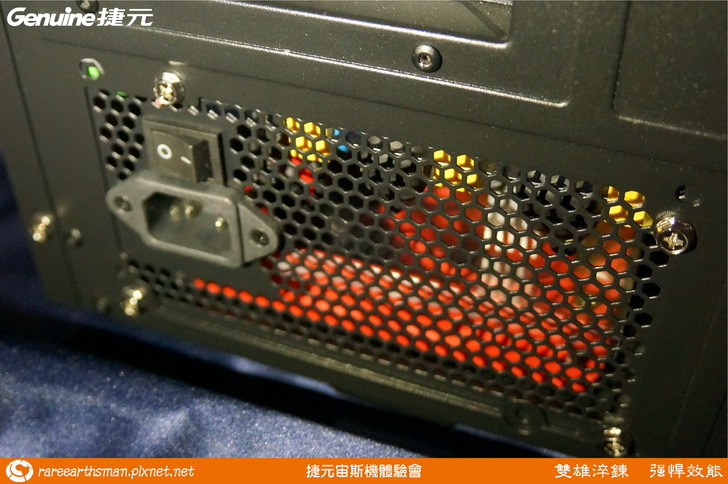 ▲旗艦宙斯機前方的連接埠設計在機殼的上方偏前方,在使用上會是比較方便的方式,使用的人會很容易的操作與插拔,但是也有小缺點就是落塵會有點小麻煩清理,共有USB3.0 x2、USB2.0 x2、Audio x1、Microphone x1、ESATA x1;機殼上蓋的把手設計在機殼的重心上方,後方設計的鰭片造型鐵網滿有造型及功能性。