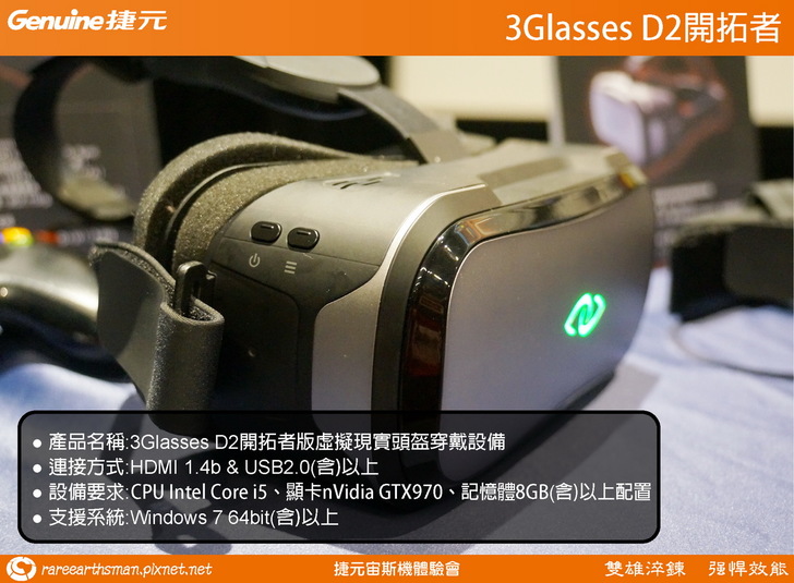 ▲VR頭戴式顯示器是最近很夯的一項產品,因為捷元也是品牌代理商,所以現場展示了唯一一項不是掛捷元Logo的產品就是3Glasses D2開拓者VR,因為VR所需要的影像運算需求滿高的,所以會需要滿高規格的設備才可以正常使用,例如最低要有Intel Core i5、nVidia GTX970顯卡、8GB記憶體、Windows 7 64bit的規格,當然規格越高越好,所以滿多舊款電腦都是無法運行的。