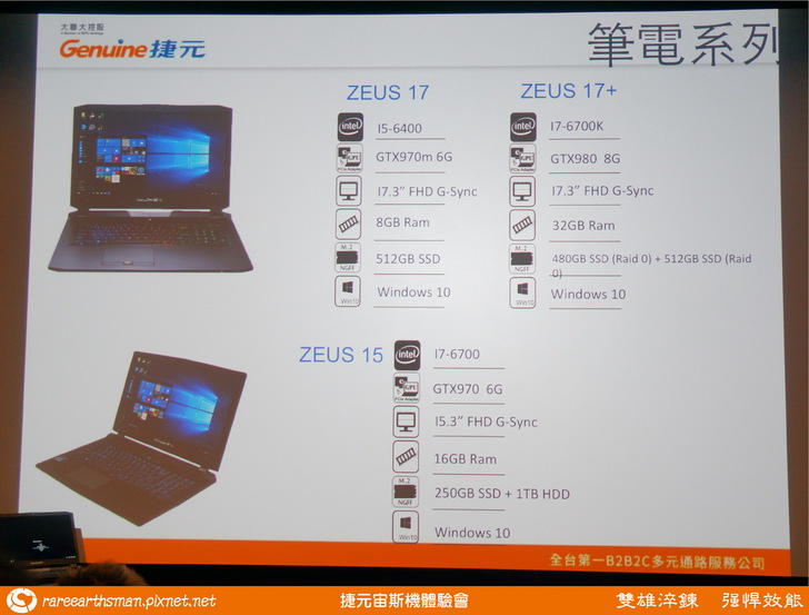 ▲筆記型電腦部分依螢幕尺寸有15.3吋的ZEUS15與17.3吋的ZEUS17,低階的ZEUS15使用GTX970,高階的ZEUS17有兩款,GTX970m的ZEUS17與GTX980的ZEUS17+。宙斯筆電的顯卡使用MXM的規格,獨顯是可以維修、更換與升級的。