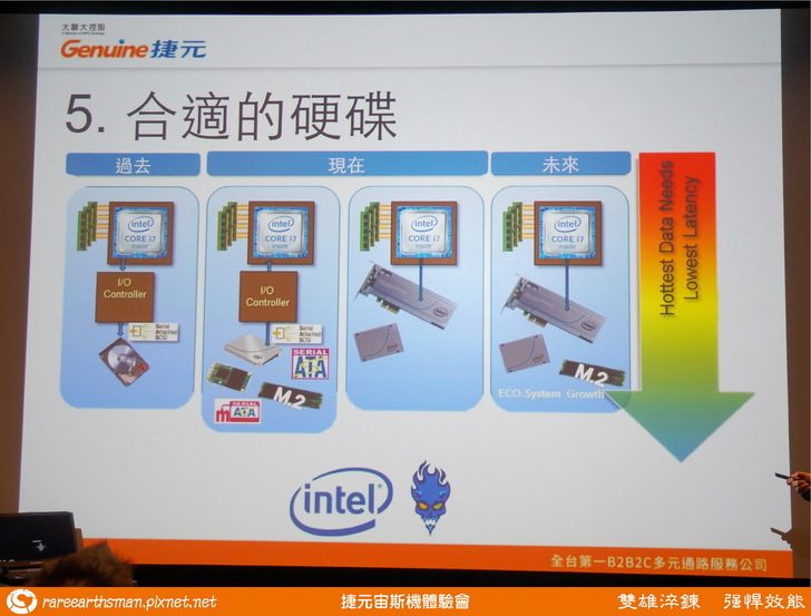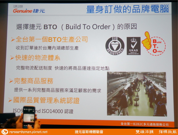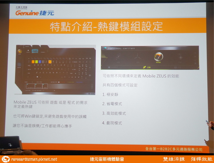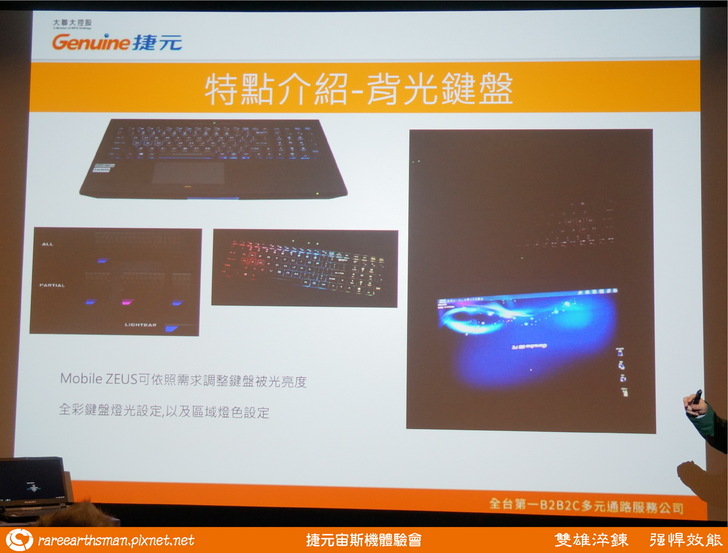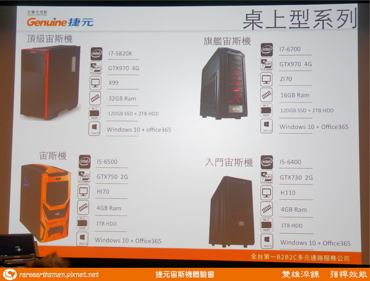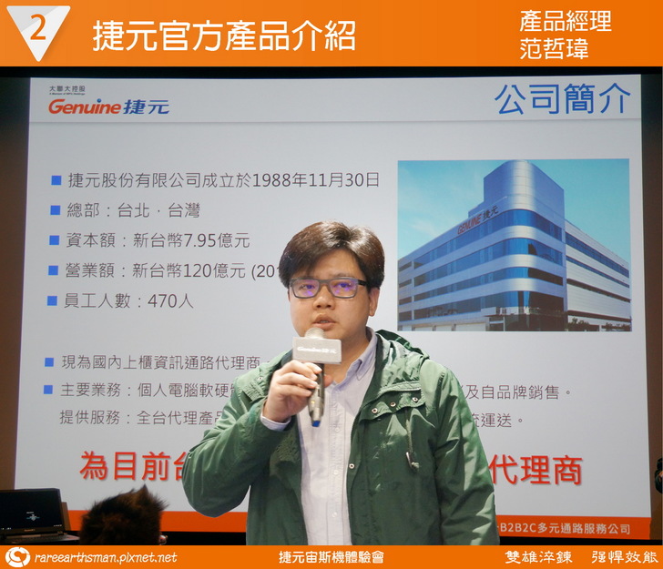 ▲官方的產品報告由捷元的系統企劃經理范哲瑋來負責介紹,首先不免再介紹一下捷元電腦,公司本身除了通路代理的部分,特別是電腦相關的零組件,像是硬碟、顯卡或CPU等等掛各大廠Logo的產品,在另一方面也是自我品牌電腦的廠商,例如像這場體驗會的宙斯機,這類掛捷元Logo的商品;而產品線也大概全吃電腦類產品了,像是伺服器、筆電、桌機及All in One部分都有販售。