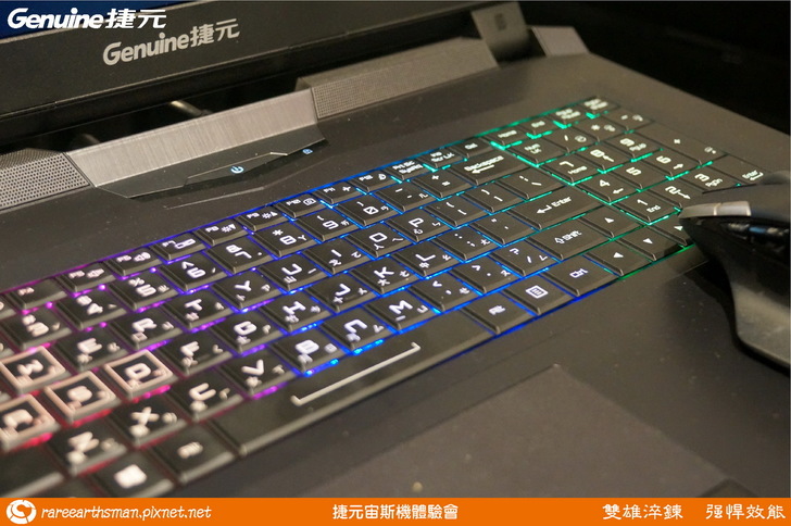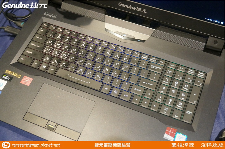 ▲ZEUS17的鍵盤採用全彩背光鍵盤,顏色與亮度都可以自由控制;因為這台配置大尺寸的螢幕,所以相對的鍵盤尺寸也設計的比較大,更可以接近一般標準鍵盤的比例,不會有筆記型電腦鍵盤不好用的狀況。