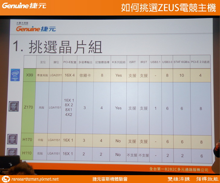 ▲如何挑選ZEUS的電競主機呢?首先就是要挑選晶片組,捷元都是採用Intel第六代的晶片組,在產品規劃方面從較低階的H110到中階H170、Z170到最高階的X99都在捷元產品裡面,按照消費者的需求與預算來做選擇。
