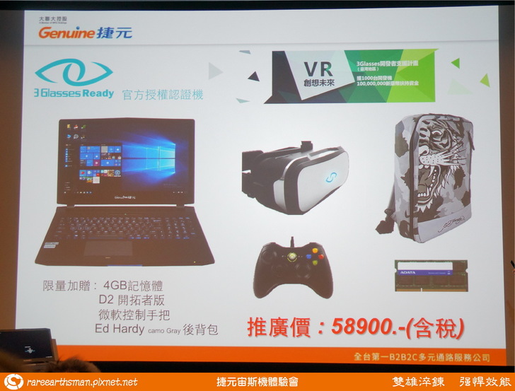 ▲3Glasses配合了這次宙斯機電競主機的發售活動,除了確認宙斯機都可以使用3Glasses D2,筆電宙斯機都有贈送D2一台、搖桿與後背包。
