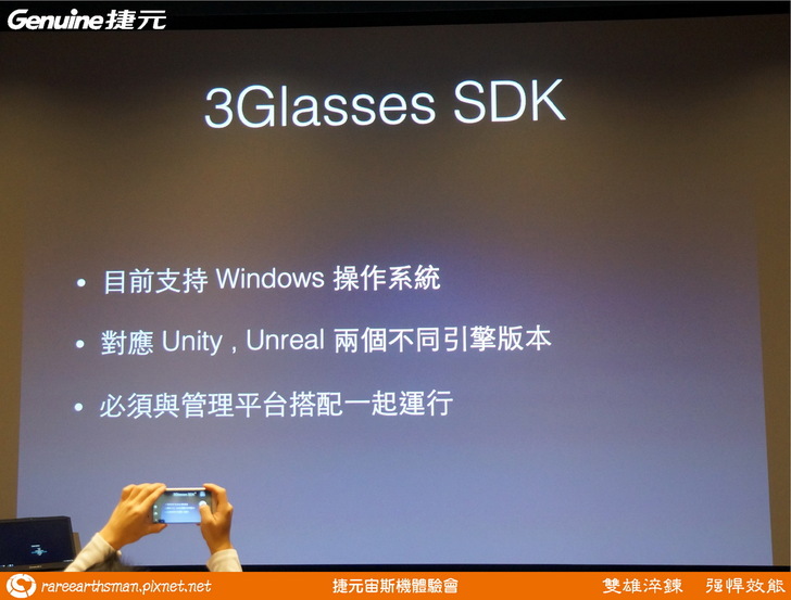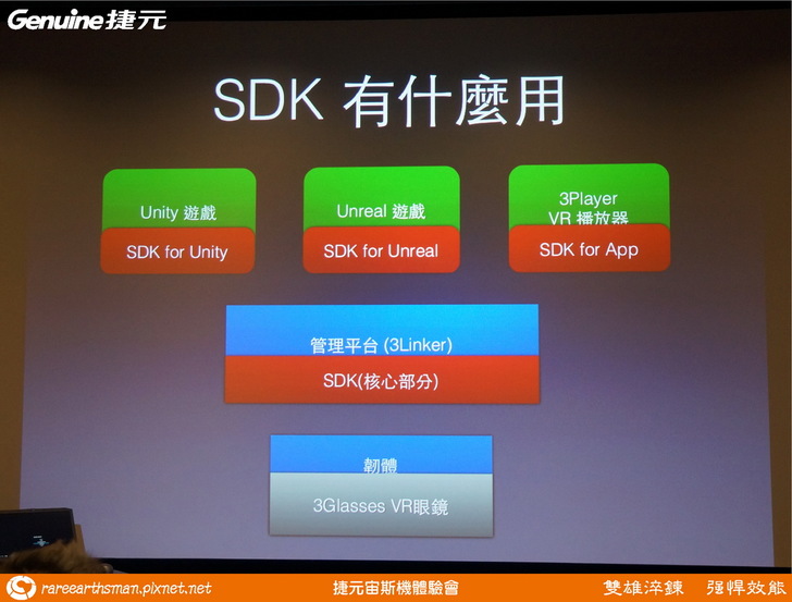 ▲3Glasses的SDK裡面有針對Unity與Unreal遊戲做SDK的軟體工程,影片撥放的APP開發,管理平台的管控與操作SDK。