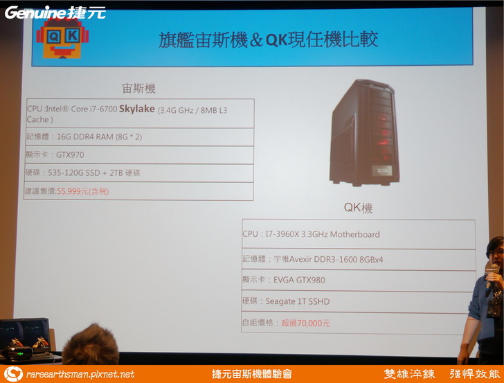 ▲QK拿自家的電腦與旗艦宙斯機做規格比較,雖然自己的電腦有點年紀了,加上常常會追新出的高規顯卡升級,但當時購買的價格也滿貴的,但是跟現在的旗艦宙斯機比起來效果是一樣的,所以如果不知道如何組一台高效能的電競主機的話還不如就買台有品牌的電競主機,既容易又有保障。
