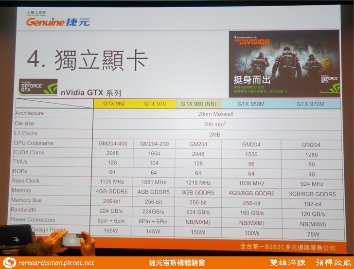 ▲一張好的顯卡可以帶來不同的體驗,獨立顯示卡方面,桌機部分有使用GTX980及GTX970,筆記型電腦方面使用了GTX980(NB)、GTX980M與GTX970M。