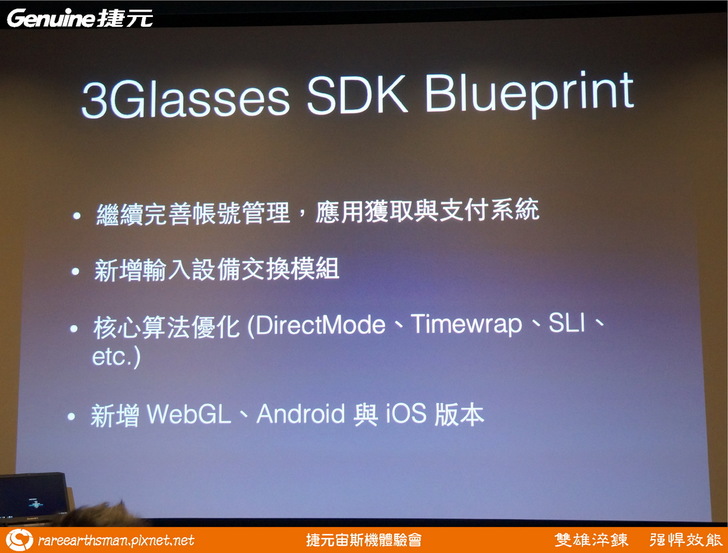 ▲3Glasses的SDK預計也會加入帳號的管理與進入金流的支付系統,包含建立線上商店及付費使用遊戲;最後也會增加WebGL、Android與iOS版本。