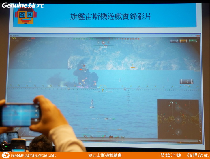 ▲旗艦宙斯機玩戰艦世界遊戲影片,水花、砲彈及煙霧都是即時處理的,玩遊戲的同時又要同時錄影+編輯+上傳,這時遊戲還可以達到54幀率/秒,真的很不容易。