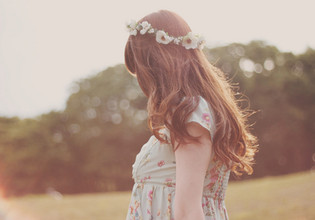輕軟蓬鬆質料的小洋裝,服裝上的圖案是粉嫩色系的小碎花,花朵不要太大,顏色不要太俗都相當適合。