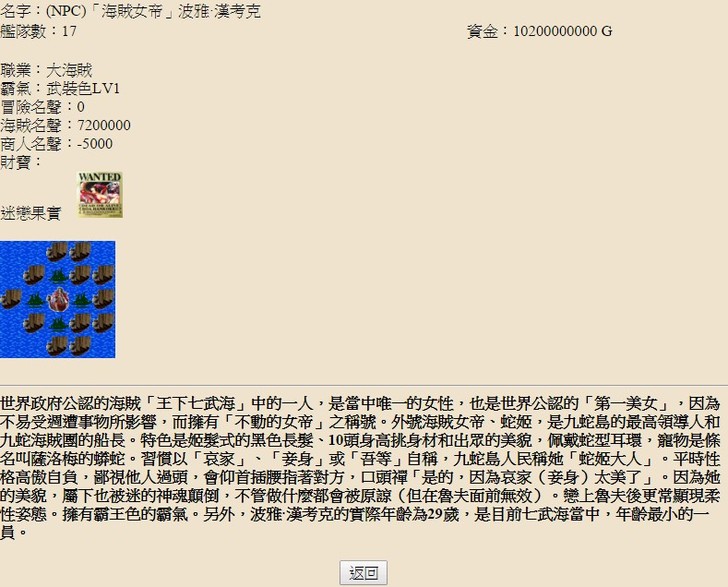 能力: 敵方迴避率降低10% 敵方惡魔果實效果降低30% 戰力提升30%