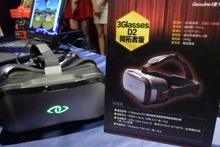 僅接著,介紹全球首款的2K VR眼鏡(3Glasses D2開拓者)。110度大廣角視野,可配戴眼鏡使用,246g重量。何謂VR眼鏡?虛擬實境(VR)眼鏡的應用相當廣泛,不管是娛樂、醫療、軍事、教育、房產等都能與它息息相關。也是目前最夯的一項產品。目前有幾家大廠-舉凡HTC Vive、Gear VR 與 Google Cardboard及三星等,紛紛推出VR商品來吸引玩家購買。