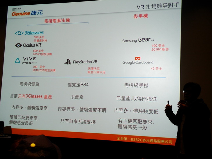 最後也分享了他目前使用的主機及宙斯機的差異比較及使用VR的心得感想