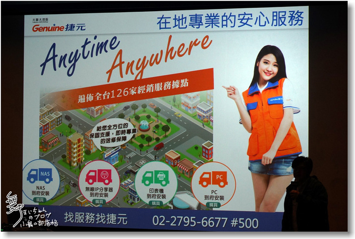 ▲而在地專業的安心服務,就靠著捷元綿密的服務網,除了撥打捷元專線外,全省也有126家經銷服務據點,快速提供消費者各項服務。最特別的是在到府服務部份,捷元除了一般的PC到府安裝外,還提供了NAS、無線IP分享器、印表機的到府安裝服務。