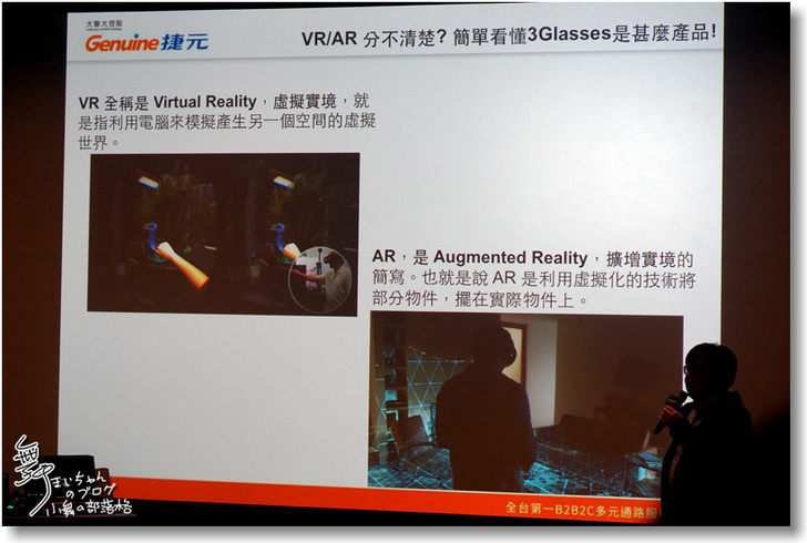 ▲而VR和AR如何區分呢?簡單來說 VR是虛擬實境,利用電腦摸擬影像產生給螢幕播出;而AR是擴增實境,利用虛擬化技術將部份物件擺在實際物件上。