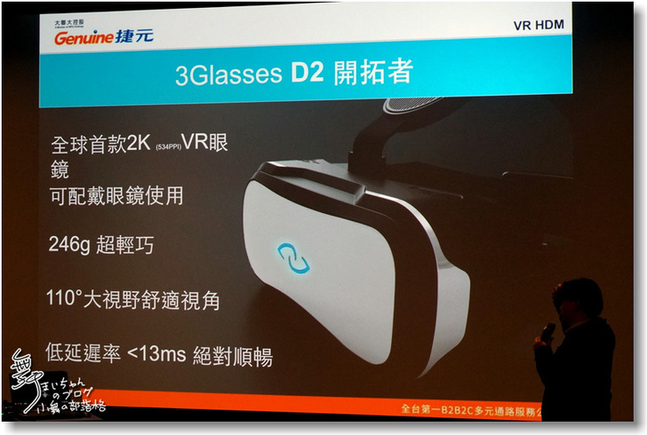 ▲接下來部份就要介紹今天的另一個主角: 3Glasses D2 開拓者的VR頭戴顯示器;這也是市面上第一個量產販售的產品。主要的五大特色: