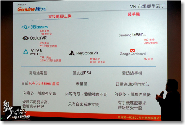 ▲QK對VR的獨特見解我也提供影片給大家更深入的了解。最後各位專家達人的說明簡報告一段落,接下來的部份我將快速逐一介紹今天展出的各款機型囉。