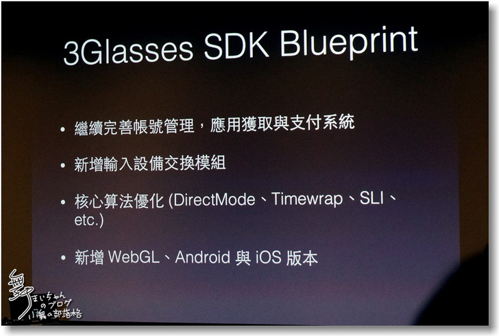 ▲下一單元將要介紹的是3Glasses SDK。