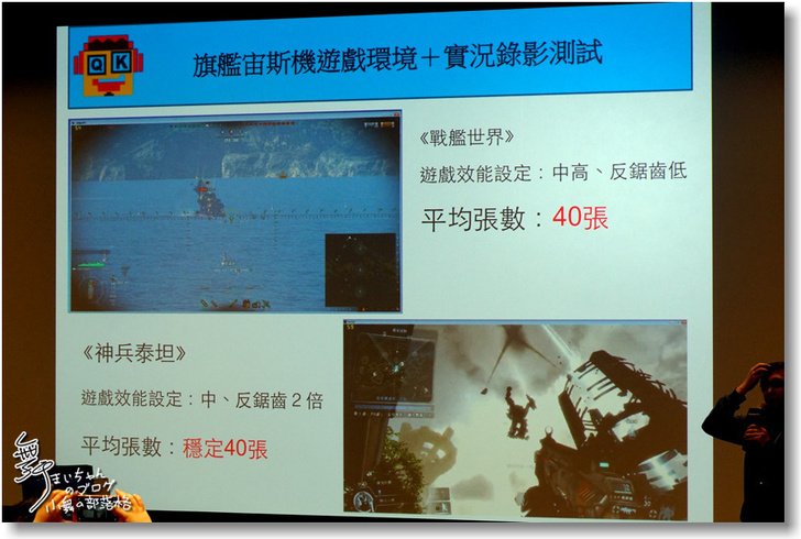 ▲接著QK也針對使用旗艦宙斯機的使用環境加上實況錄影來測試。相關的說明也可見上方的影片。