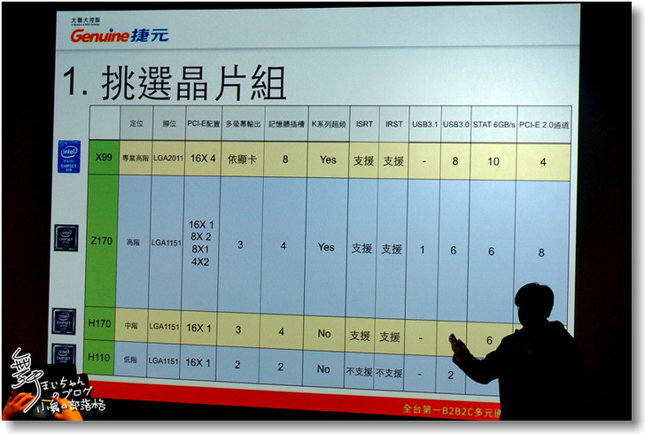 ▲主要將分為五大項,第一是挑選晶片組;大家如何找尋一台適合的電競主機,可以從晶片組的系列來挑選,從入門的H110開始,往上就是H170、Z170到X99,大家可以依據自己的需求來選擇。