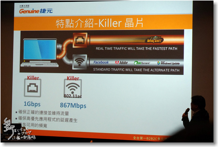 ▲主要是以前的網路系統,Wi-Fi和有線網路是互相不能支援的,而Killer晶片則能夠將有線與無線的網路頻寬進行整合,來維持穩定網路流量,而且也可以去設定不同應用程式使用網路的優先權,來讓某些程式可以擁有充足的網路頻寬。