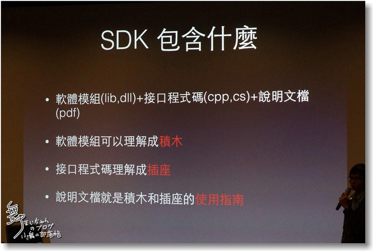 ▲SDK包含了什麼呢?其中包含有軟體模組函式庫(lib,dll)、接口程式碼(cpp,cs)及說明文檔(pdf)。
