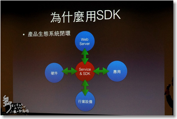 ▲這是產品生態系統閉環的簡圖,SDK能提供硬件、應用、網路伺服器支援或是行業設備的資訊。