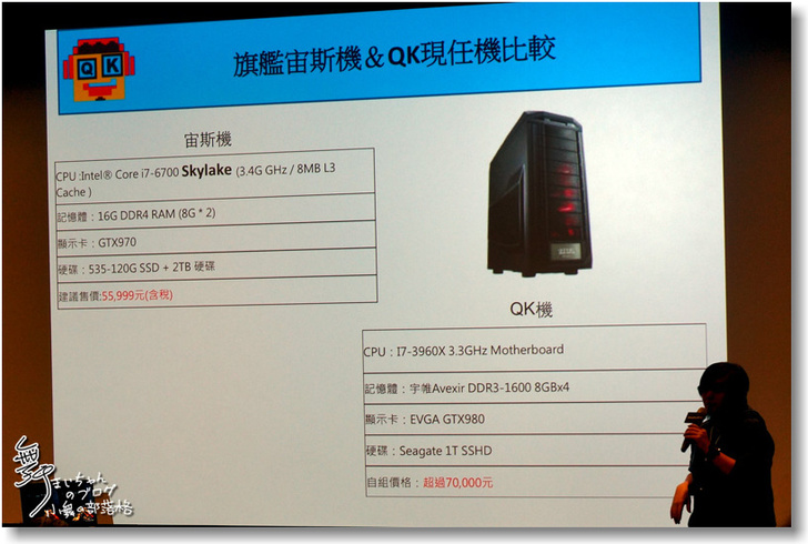 ▲而最後QK也建議大家,如果有一筆預算想買電競主機,花了一大筆錢來選擇高規配備,結果和宙斯機相比並沒有太大的優勢,反而宙斯更便宜又有品牌加持。