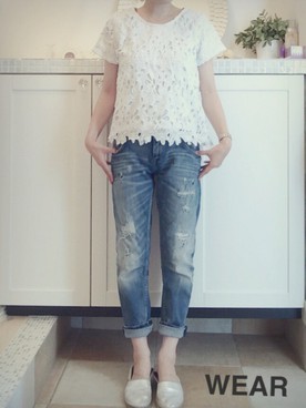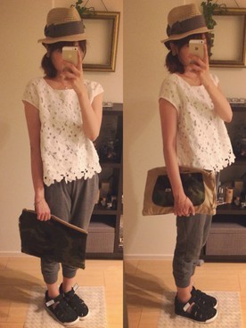 白色的蕾絲上衣很適合搭上灰色系的休閒寬褲,加上一雙平底鞋,或是一些卡其色的絨布單品。依照自己想呈現的感覺在髮型和小物上面稍做變化,視覺風格也會有所改變。