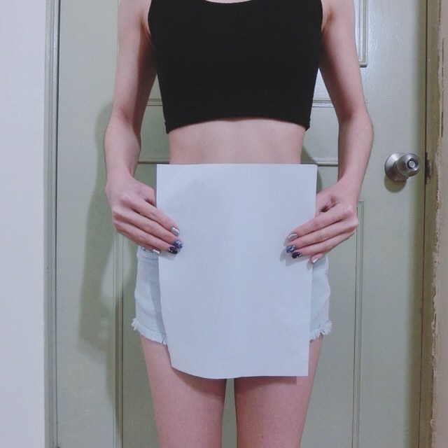 以前曾流行過一種基準,將手由後方環繞一圈以能摸到肚臍的總長度為理想的腰圍。而最近成為很多瘦身女孩們爭相討論的熱門話題,是稱做「A4腰」的新名詞。將一張A4白紙直向放在腹前或腰後做目測,A4紙的左右兩側若看不見多出來的腰則為理想的腰圍。那麼若左右兩側超過A4紙的寬度,以不給身體過多的負擔為原則,規劃安全健康的瘦身,以達到理想的腰圍來奮鬥。一開始這個方法只有韓妞們比較重視,爾後日本、中國也開始流行起來囉!