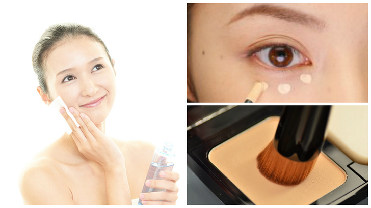 重點應放在底妝上,打造由內向外透亮的肌膚,打造自然的透明無暇感,像是擁有嬰兒肌一般光滑白皙。妝前使用化妝水好好的濕敷,讓肌膚吸收足夠的水分,再抹上輕薄的妝前乳穩固肌膚底色,使用遮瑕筆在黑眼圈的位置點上幾點,均勻塗抹掩蓋暗沉。使用刷具沾取粉餅,輕輕刷均勻在臉部外圍,讓明顯的毛孔看不見。