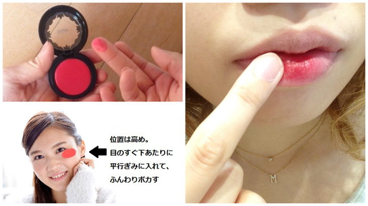 要讓妳立體的五官輪廓上展現出氣色就是這次妝感的重點,紅色或是濃濃的深粉色都是不錯的建議。先用手指沾取一點腮紅看看顏色的飽和度,接著塗在眼下,也就是笑起來的時候臉頰骨最高的位置。另外也可以直接上在嘴唇上,維持唇色避免脫色。最後使用蜜粉,從額頭開始沿著臉部輪廓輕刷下來,避免脫妝。