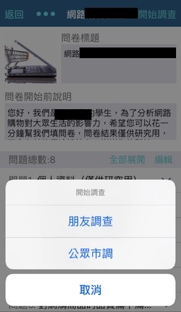 反正這個App有分朋友調查跟公眾市調 如果我們只是要傳給認識的人就直接用朋友調查就好了