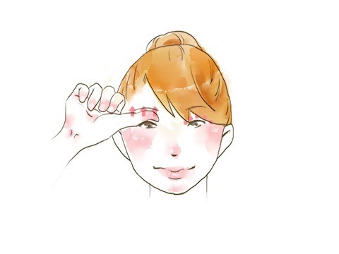 另外,在眉間之下靠近鼻梁的凹陷處按摩約15秒,同樣能促進血液循環,眼睛會覺得舒服明亮許多,如果可以的話慢慢從眉頭按摩到眉尾,會更徹底的按摩到眼睛周邊的血管。