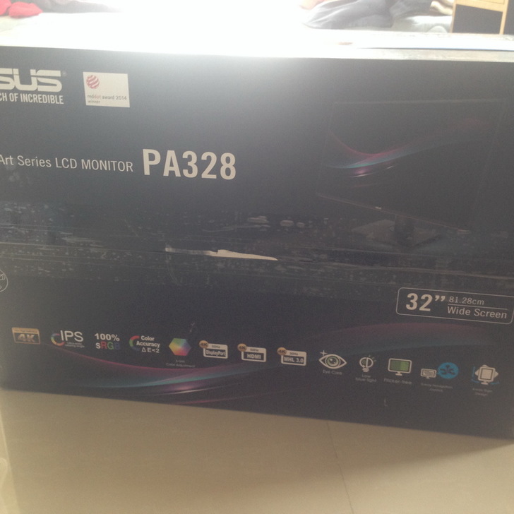 好吧,會入手這台螢幕完全是意外中的意外,其實之前就有在看3D或是4K螢幕,現在3D比較退燒了,就在想要入手4K螢幕,過年前才敗了JVC 55T,因為房間太小只好放在客廳,就在想房間是不是要弄一台4K螢幕啊?這想法其實想了一年多了,之前有朋友脫手4K螢幕有心動,可惜那時剛失業所以忍下來,過了一年多後現在工作又不順又敗不下去,不過因緣際會的,有個朋友想要脫手ASUS PA328Q,才用一年、價格也還不錯,雖然這價格可以搞得到便宜的4K電視,但華碩的IPS螢幕就是不一樣啊,這麼威的螢幕讓小弟實在忍不住了,對方還特別想到我問了幾次,好啦,LP一捏就衝吧!