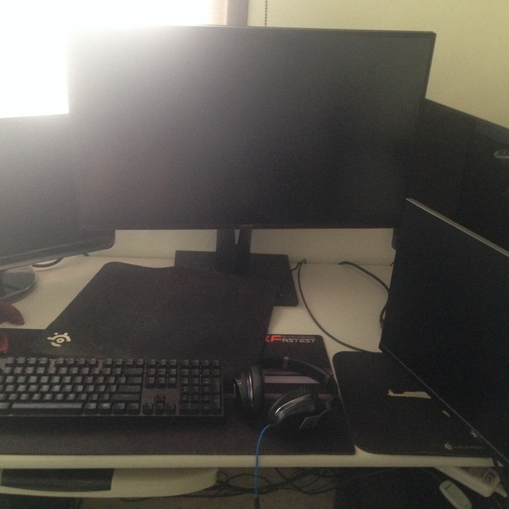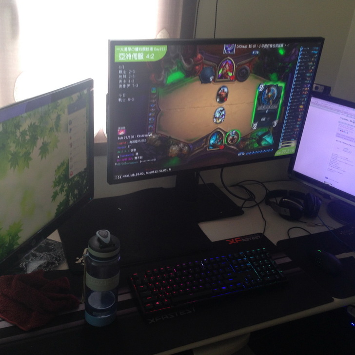 而小弟為何同時用這麼多顆螢幕呢?因為很早之前為了玩遊戲就搞了三螢幕,後來覺得遊戲三螢幕還好,所以變為玩遊戲上網時,都開著Twitch看直播或網路電視、球賽等,看Twitch就要看當時玩什麼遊戲就會看那個遊戲的頻道,目前比較迷爐石,一般上網時都會找兩個實況來看。