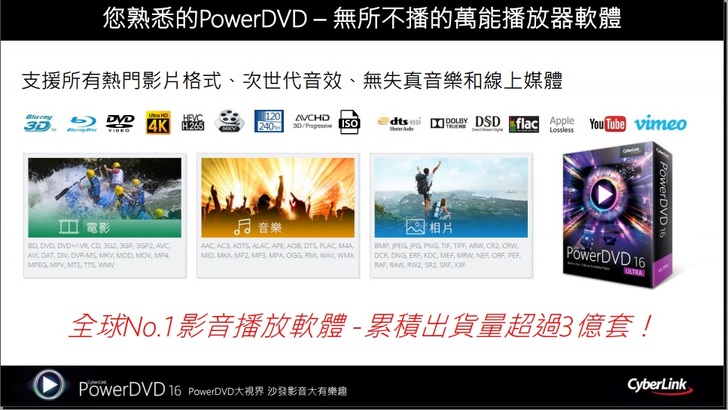 ▼ 目前 PowerDVD 已經賣出3億套了耶,也太強囉 而PowerDVD 16更是強悍