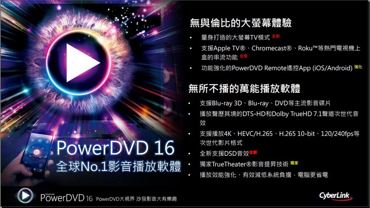 POWERDVD 16 TrueTheater 影音提昇技術 家中劇院好震撼